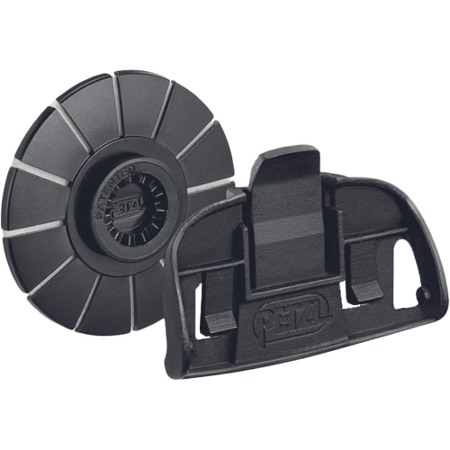 Petzl E93001 KIT ADAPT is an adapter that allows the user to use the headlamp on a helmet without a headband, while retaining the ability to tilt the headlamp body