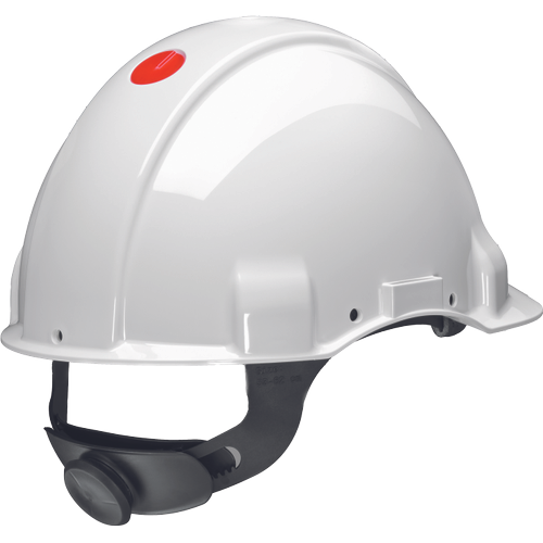 The 3M Safety Helmet G3001NUV has a headband with a clamping wheel for easier and faster adjustment and a plastic sweat forehead band to ensure comfort; The 3M Uvicator indicator tells you when your safety helmet has been overexposed to UV rays and it's time to replace it; provides electrical isolation up to 440VAC; a short visor provides a better view upwards; the headband can be rotated 180° for a better view when working in confined spaces; compatible with a wide range of accessories