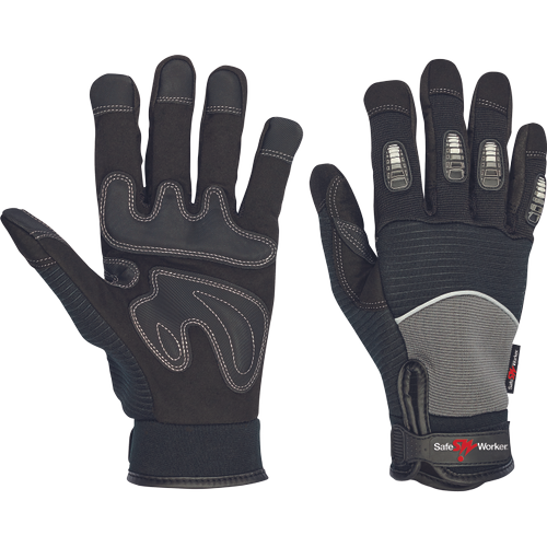 Handschoenen met een elastische rug die zorgt voor de optimale beweging van de hand, gevoerde dempingpads die zorgen voor extra bescherming, klittenbandafsluiting bij de pols voor de perfecte pasvorm en PVC knokkelbescherming.