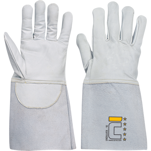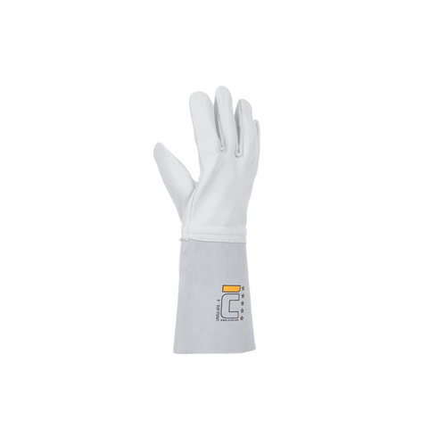 Volledig lederen lashandschoenen van geitenleer, genaaid met Kevlar® draden. Splitleer manchet 15 cm. Geschikt voor TIG-lassen.