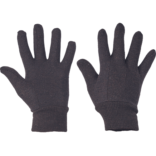 Handschoenen met elastisch gebreide stof van bruine katoenen jersey.