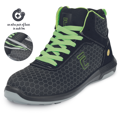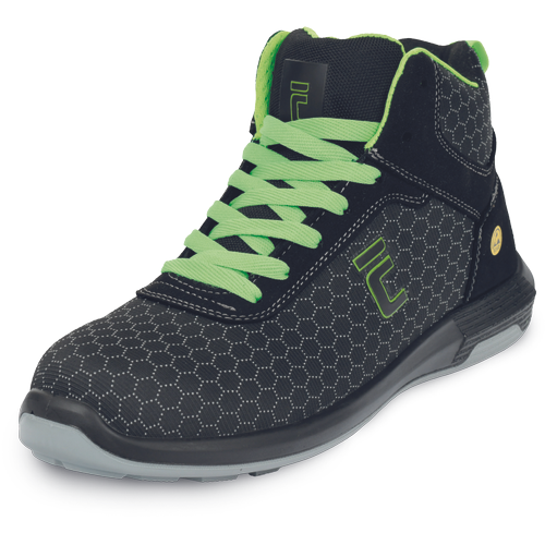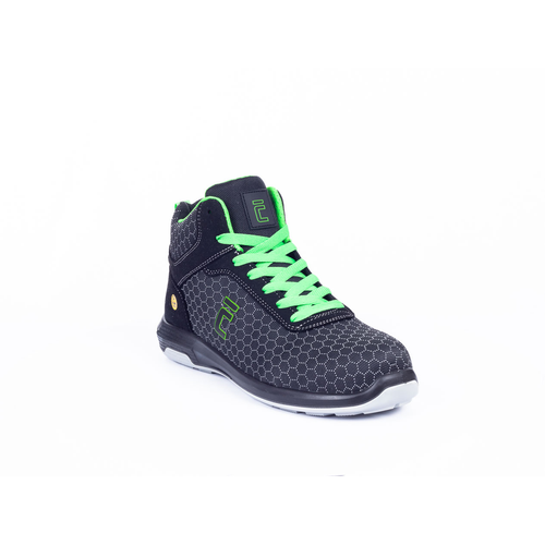 Halfhoge veiligheidsschoen met een veiligheidsneus van glasvezel. Antiperforatie-inzetstuk van het type “S”.