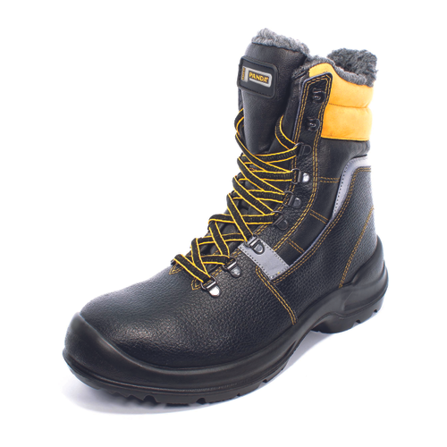 Hoge warmte-isolerende en waterdichte veiligheidsschoen met stalen neus en tussenzool bestand tegen doorsteken, antistatische en antislip PU/PU zool zuur- en oliebestendig, schokabsorptie in hiel, bovendeel van ademend leer en reflecterende componenten voor betere zichtbaarheid.