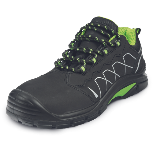 • moderne veiligheidsschoenen met een composiet antiperforatie tussenzool en een composiet neuskap, die beschermt tegen compressie met een kracht tot 15 kN of een last van maximaal 20 kg vanaf een hoogte van 1 m • antistatische buitenzool gemaakt van een combinatie van polyurethaan en zeer duurzaam rubber is niet alleen veilig dankzij de antislip eigenschappen, maar ook bestand tegen oliën en slijtage • het bovenwerk is gemaakt van echt leer “NUBUCK” en de binnenvoering is gemaakt van ademend polyester • reflecterende elementen garanderen een verhoogde zichtbaarheid van de gebruiker • dit model is uitgerust met een comfortabele binnenzool, die dankzij de gelhak schokken nog beter absorbeert en een maximaal gevoel van comfort tijdens het werk brengt • deze schoenen zien eruit als sportschoenen, maar ze beschermen je voeten perfect • extra paar veters in elke doos